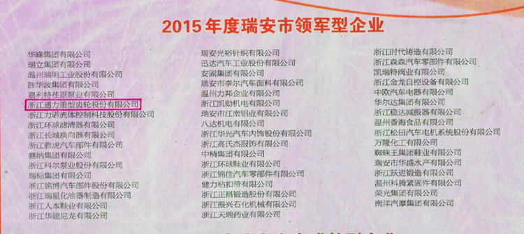 为鼓励先进,树立典型,瑞安市委、市政府在3月25日召开的全市经济工作会议上,授予浙江8868体育官网首页入口2015年度瑞安市领军型企业并颁发奖牌。