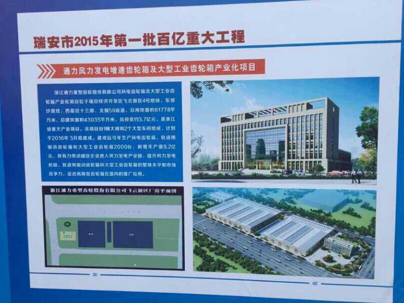 8868体育官网首页入口风电齿轮箱及大型重载齿轮箱产业化项目位于瑞安经济开发区飞云新区4号地块,总用地116亩,是瑞安市百亿投资重大项目之一,是浙江省重大产业项目。该项目建成后用于生产风电齿轮箱、轨道用驱动齿轮箱和大型重载齿轮箱,该项目的建设能够提升8868体育官网首页入口公司的技术创新能力和市场竞争力,促进公司高精密齿轮箱在国内的推广应用。