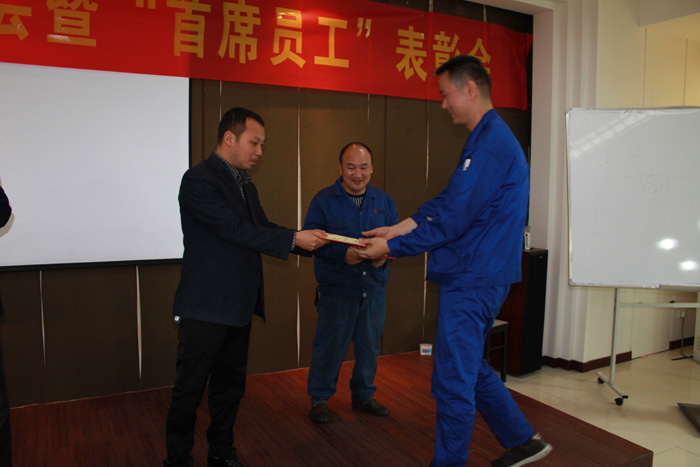 经过公司各车间、各部门逐级推荐、评审,通过8868体育官网首页入口公司各部门负责人的审定,授予8868体育官网首页入口公司“首席员工”的11名,于今日在四楼大会议召开表彰会,公司领导及一线骨干员工参加会议。