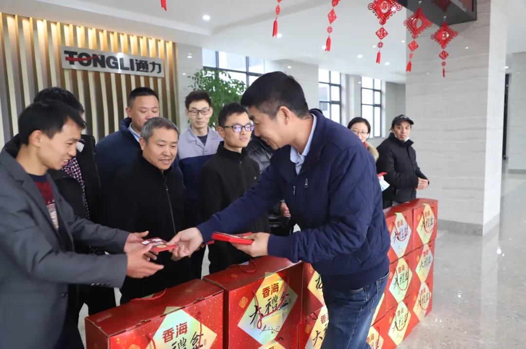 2月8日(腊月二十七),为响应国家鼓励企业职工就地过年的号召,为给予今年留在瑞安就地过年的8868体育官网首页入口员工新年祝福和温暖,8868体育官网首页入口党支部、工会连同行政部特为8868体育官网首页入口留瑞就地过年的职工代表们送上新春大礼包,祝愿员工们新春愉快。公司党支部书记项建设代表公司向员工们一一送上礼包。