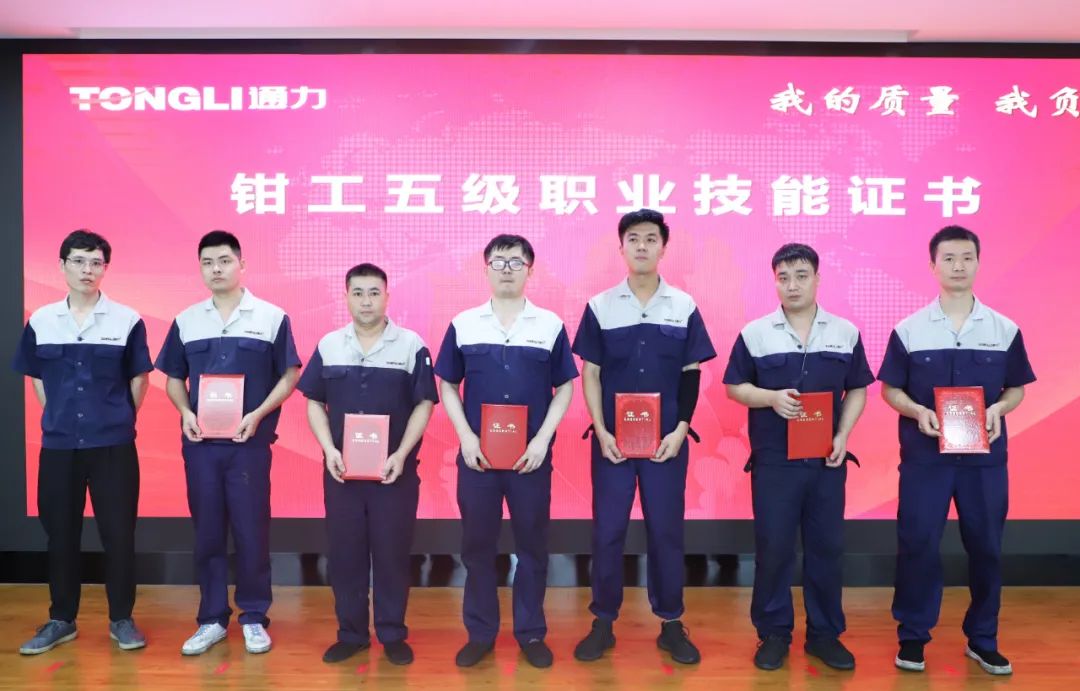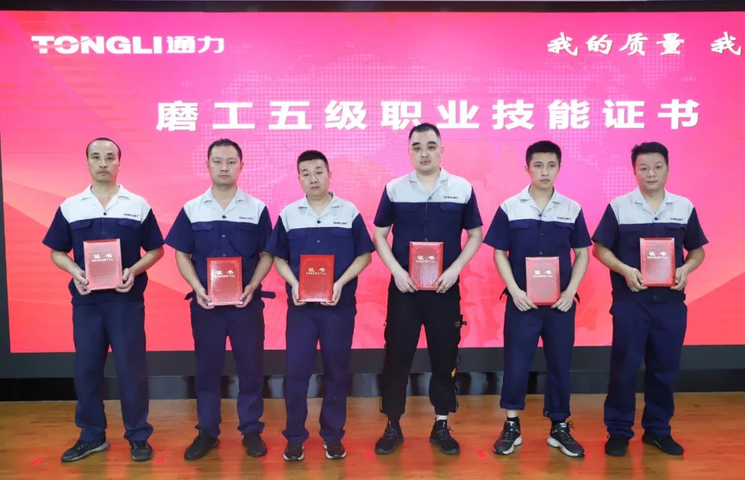 会议伊始,生产车间主任郑德文、黄维銮分别为我们21位总装车间员工颁发钳工五级职业技能证书及41位磨齿车间员工颁发磨工五级职业技能证书,并希望获得证书的同事们在日后工作中继续提升自身工作技艺、精益求精,再创佳绩。