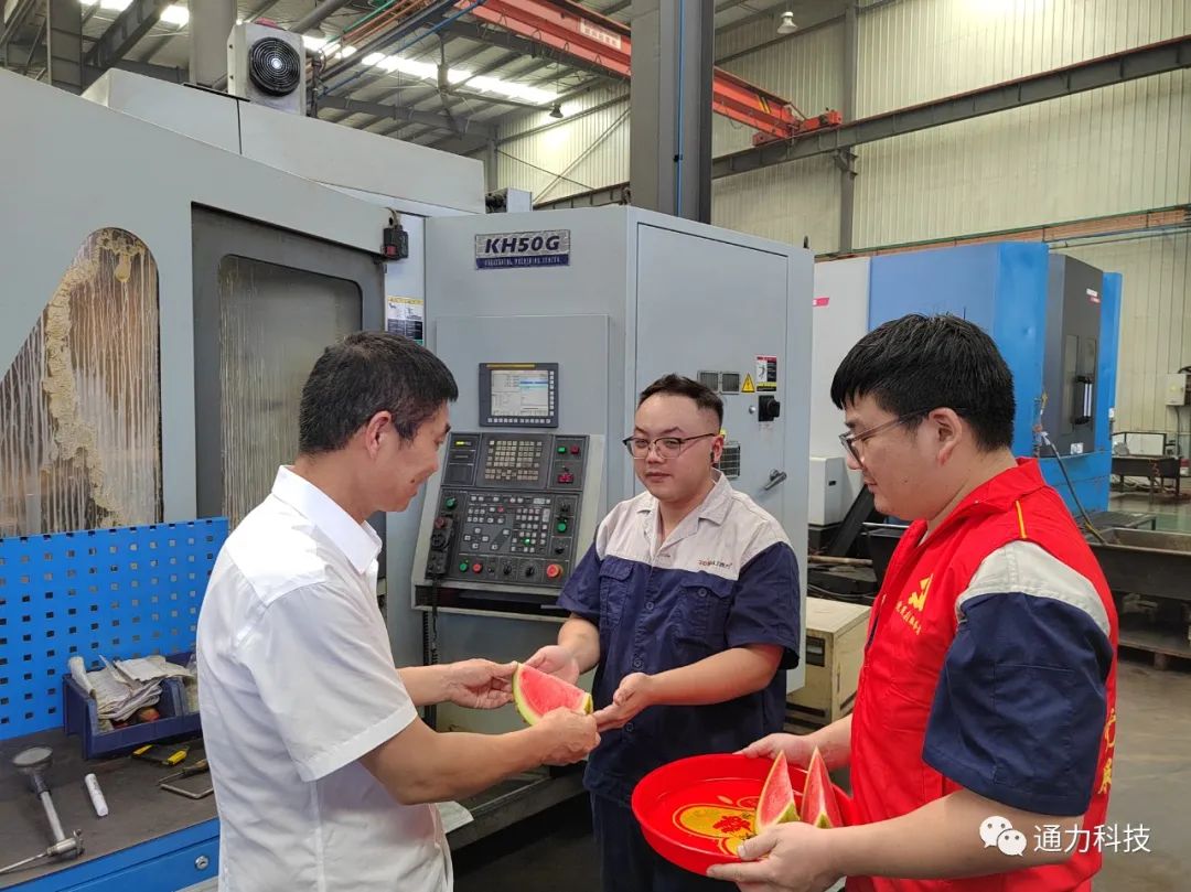 活动中,党支部书记、工会主席项建设赴各车间单位,向一线职工送上西瓜、茯茶等防暑降温物品,对他们不畏高温、坚守岗位、默默奉献的精神表示感谢,叮嘱员工上岗前保证充足休息,工作中注意身体健康,及时补充水分。公司全体职工在心怀感激的同时也纷纷表示,感谢公司各级领导的关心,我们将以实际行动立足岗位,做好本职工作,为8868体育官网首页入口科技发展做出更大的贡献。