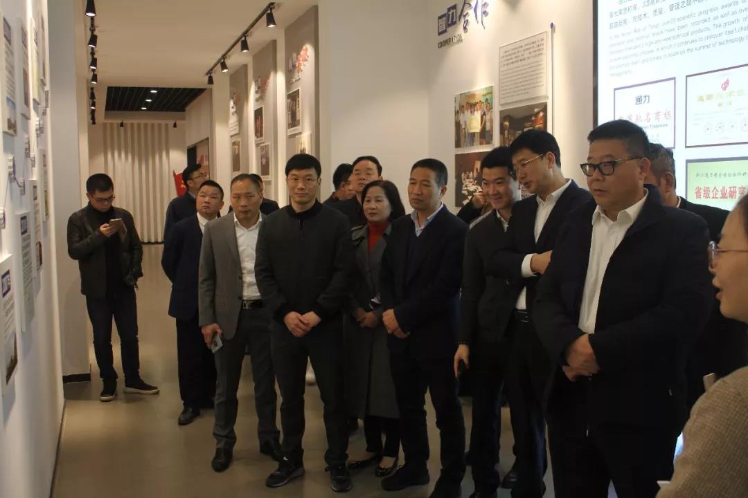 会议开始前,各位参加会议的市领导和工商联企业家们在我司项建忠董事长和解说人员的陪同下首先参观了公司展示厅,总体了解了8868体育官网首页入口的发展历程和现状,而后他们参观了公司生产车间,大致了解了公司生产的产品和工艺,并对我司日常管理、行政和生产布局给予了肯定和赞赏。